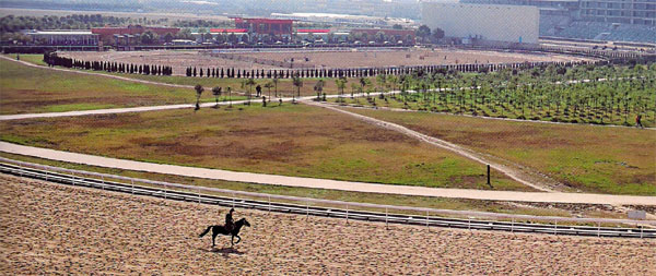 打造現(xiàn)代化的馬城 汽車(chē)剛停在馬場(chǎng)門(mén)口,一棟現(xiàn)代氣息濃烈的大樓便抓住了我的眼球,后來(lái)得知,這就是觀演樓。大樓長(zhǎng)度與賽馬跑道的直徑相似,7層的大樓給人壯觀氣魄雄渾之感,可堪稱(chēng)行內(nèi)之最。樓內(nèi)有會(huì)員和馬主包廂,專(zhuān)供會(huì)員和馬主觀看賽事和參加節(jié)慶活動(dòng)時(shí)使用,正中間的白色帆布下是露天的亮馬圈。目前,大樓還處于正在建設(shè)階段,最后的樣子十分值得期待。 比賽跑道全長(zhǎng)1620米,內(nèi)部為標(biāo)準(zhǔn)馬術(shù)訓(xùn)練場(chǎng)地,會(huì)員騎馬區(qū),騎馬訓(xùn)練場(chǎng),主辦公樓以及大面積綠化。 馬房在跑道的北側(cè),10排寬敞的馬房,每個(gè)馬房都有專(zhuān)門(mén)的騎手負(fù)責(zé)管理,目前東方馬城已擁有500多匹駿馬。在我參觀的同時(shí),馬場(chǎng)的工作人員正在為馬房安置監(jiān)控系統(tǒng)。 據(jù)東方馬城的媒介主管歐陽(yáng)靜介紹,東方馬城是東方神馬實(shí)業(yè)(武漢)有限公司旗下的大型綜合性項(xiàng)目,總占地面積100余萬(wàn)平方米,以體育賽馬為主導(dǎo),包括國(guó)際賽馬場(chǎng)、賽馬學(xué)院、賽馬展覽館、賽事中心、觀演大樓、五星級(jí)國(guó)際會(huì)議中心大酒店、至尊會(huì)員豪宅、會(huì)員會(huì)所、游客服務(wù)中心及商業(yè)、休閑、娛樂(lè)中心等10多個(gè)項(xiàng)目,是中國(guó)競(jìng)猜型賽馬彩票研究課題組、湖北省馬術(shù)協(xié)會(huì)、武漢馬術(shù)協(xié)會(huì)、武漢賽馬俱樂(lè)部和東方神馬集團(tuán)武漢總部的辦公場(chǎng)所,是湖北武漢國(guó)際賽馬運(yùn)動(dòng)交流和商務(wù)合作的新平臺(tái)。 打造賽馬之都 在采訪東方馬城國(guó)際賽馬場(chǎng)新聞宣傳部經(jīng)理劉鴻清時(shí),他告訴我們:武漢要重新打造中國(guó)的賽馬之都,為此,東方神馬集團(tuán)正做著一切的準(zhǔn)備。 東方馬城已經(jīng)成立10年時(shí)間,幾乎成為武漢家喻戶曉的地標(biāo)性場(chǎng)所。這里吸納了會(huì)員近500多人,并且成為了青少年訓(xùn)練基地,每年光中小學(xué)生到馬城進(jìn)行培訓(xùn)的就有—二十萬(wàn)人。同時(shí),東方馬城還與多家大學(xué)、企業(yè)成為合作伙伴推廣馬術(shù)運(yùn)動(dòng),并日漸成效。 許多武漢市民節(jié)假日都會(huì)選擇來(lái)到馬場(chǎng)放松身心,與可愛(ài)的馬零接觸。馬術(shù)運(yùn)動(dòng)在武漢受到了越來(lái)越多人的歡迎。馬場(chǎng)和武漢文體頻道聯(lián)合播出的介紹馬文化、知識(shí)、歷史的欄目《馬前炮》在該頻道收視率最高。 為了打造賽馬之都,東方馬城推出了神馬騰飛計(jì)劃,在全省范圍內(nèi)選拔青少年進(jìn)行一年的免費(fèi)騎師培訓(xùn),合格后赴國(guó)外進(jìn)一步培訓(xùn),也是為了更好的提高國(guó)內(nèi)賽馬業(yè)的水平。 武漢商業(yè)服務(wù)學(xué)院也與馬場(chǎng)聯(lián)合開(kāi)辦“賽馬產(chǎn)業(yè)方向”學(xué)科,并面向全國(guó)招生,力爭(zhēng)把武漢賽馬事業(yè)早日推向輝煌,成為賽馬之都。 以賽代練,總結(jié)經(jīng)驗(yàn) 賽馬運(yùn)動(dòng)是全運(yùn)會(huì)、亞運(yùn)會(huì)的比賽項(xiàng)目,在中國(guó)的發(fā)展越來(lái)越快,很多地方也紛紛建設(shè)馬場(chǎng),十分受百姓喜歡,有很深遠(yuǎn)的發(fā)展?jié)摿?。東方馬城為了籌備中國(guó)速度賽馬公開(kāi)賽,已連續(xù)近一年時(shí)間每周都有賽馬比賽,這些賽事大部分為內(nèi)部比賽,在500多匹馬中進(jìn)行優(yōu)勝劣汰,同時(shí)對(duì)檢測(cè)、賽事組織、場(chǎng)地水平、人員培訓(xùn)、馬匹編班做好充足的準(zhǔn)備, 一切合格后會(huì)正式推出,為迎接國(guó)家級(jí)的各項(xiàng)賽事做好充足的準(zhǔn)備,打造良好的賽事平臺(tái)。 文/何鑫 |