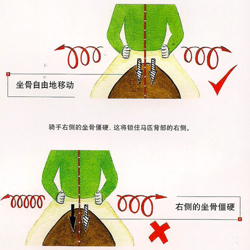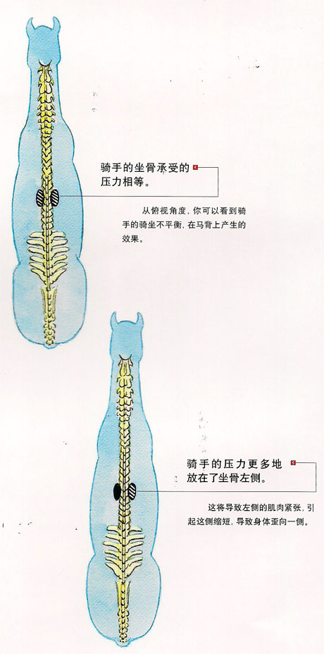 無鞍騎乘建立了人和馬匹之間的親密接觸,會(huì)幫助騎手更好地去理解馬匹的身體是如何工作的。然而若想嘗試無鞍騎乘的感覺,首先確保這匹馬要適合你的騎乘水平(安靜的)然后要你的教練把馬匹牽到安全的場地內(nèi)再騎。 從生理結(jié)構(gòu)上來說,人體骨胳的構(gòu)造是適合于騎乘的,為什么呢?因?yàn)閺难窟@個(gè)位置,人的身體被分成了兩個(gè)部分:人的肋骨和盆骨是分開的。這樣你的身體就有了很大的柔韌性,去吸收馬匹運(yùn)動(dòng)時(shí)所產(chǎn)生的波動(dòng)。你在保持好上半身姿勢的同時(shí),你的下背部及盆骨可以隨著馬匹而運(yùn)動(dòng)。 最初,無鞍騎乘要注意檢查你的身體是不是由于太緊張,而沒有了騎坐,以致感到在馬背上顛簸的很厲害?;蛏眢w松松垮垮,把馬匹的背部重重地向下壓。要把你的頭部、脖頸和后背的重量釋放到你的坐骨上,這樣,你跟馬匹的配合才會(huì)好一些。 請(qǐng)一個(gè)教練牽著你的馬匹,自由韁慢步。感覺馬匹的脊椎在你坐骨下是如何運(yùn)動(dòng)的,并且檢查你是否把重量平均地分配在馬匹的脊椎兩側(cè)。如果你習(xí)慣了扭曲的騎馬姿勢,當(dāng)你把姿勢變正直時(shí),你會(huì)感到有點(diǎn)不適應(yīng)。知道怎樣是正確的,就要這樣去練習(xí),叫你的朋友把意見反饋給你。 現(xiàn)在,把雙手指向天空,通過指尖把身體向上伸展開,兩掌心相對(duì),輕輕地向里轉(zhuǎn)動(dòng)你的小拇指,從指尖到整個(gè)上體(除頭部外)的重量全部“懸掛”到你的指尖上。感覺馬匹的動(dòng)作,現(xiàn)在你的騎坐在馬匹的脊椎兩側(cè)上才會(huì)放松下來,你的體重才會(huì)更加平均地分配在馬匹的背部上?,F(xiàn)在把你的胳膊放低一點(diǎn),但肋部不能塌陷。 當(dāng)你騎在馬背上時(shí),你能感覺馬匹肋部隨著后肢的踏進(jìn)而左右搖擺,體會(huì)當(dāng)馬匹的肋部搖到右側(cè)時(shí),你左側(cè)的坐骨和左腿是不是會(huì)往下?謹(jǐn)記:這時(shí)你的左側(cè)肋骨要更挺拔,另側(cè)肋骨也不能塌,坐骨和腿隨著馬運(yùn)動(dòng)。 做以下的訓(xùn)練,直到你能感覺到你的髖部在馬背可以向各個(gè)方向運(yùn)動(dòng)——上、下、后、前、兩側(cè)。 練習(xí)建立深且柔軟的騎坐 在慢步騎乘中,請(qǐng)你的教練牽著馬匹。要他說出以下的問題(每個(gè)問題用2分鐘),以幫助你深化感覺。閉上眼(確保安全的情況下): 你能感覺到馬匹在移動(dòng)你的髖關(guān)節(jié)左側(cè)和左坐骨嗎? (1)向上? (2)向下? (3)向前? (4)向后? (5)向兩側(cè)? 如果你覺得很難體會(huì)到側(cè)向的動(dòng)作,那么就把你的注意力集中到馬匹的肋骨的搖擺上。 現(xiàn)在換成髖部右側(cè)和右坐骨體驗(yàn)一下。 練習(xí)發(fā)展正直的姿勢 右手向上伸展,指尖朝上,當(dāng)你感到馬匹的肋部從右側(cè)擺到左邊時(shí),輕微地把你的右坐骨更深地降低,同時(shí),你的右手指更向上,且右肋骨向右移動(dòng)一點(diǎn)點(diǎn)。感覺肋骨之間的肌肉是如何得到伸展的,在左邊重復(fù)以上的練習(xí)。 |