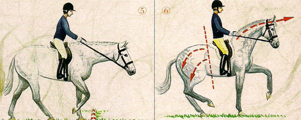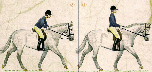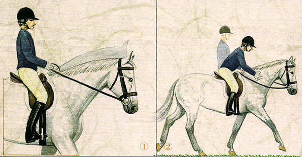 大多數(shù)騎手發(fā)現(xiàn)很難做到正確的韁接觸。下面的方法會(huì)幫你通過韁與馬匹嘴部和馬的接觸進(jìn)行很好的溝通。 讓馬匹通過要韁來牽動(dòng)你的手,同時(shí)讓你的手“想要向前”,且朝向馬嘴的方向,而不要讓你的手企圖向后朝你的髖部移動(dòng)。這是鼓勵(lì)馬匹更多地伸展脊椎,更加向前去尋找口銜。馬匹的頭、頸、背越放松,呼吸就會(huì)變得更有效率,并且會(huì)更加容易地接受你要求它做的動(dòng)作。 要讓你的手隨著馬匹頭部的前后運(yùn)動(dòng)而前后運(yùn)動(dòng),這樣馬的脖子可以伸長并流暢運(yùn)動(dòng),而不是緊張、抗拒。用這種很輕的接觸,你會(huì)感覺到馬的嘴部是很柔軟的。過一段時(shí)間后,如果你不去跟馬匹較勁,它將把口銜向前要,這是馬匹工作受銜的第一階段,也是讓馬匹身體正直的先決條件。 要尋求手部的敏感意識(shí),想象你的手里握著兩只小鳥(如圖),你想輕輕地、安全地握著它們,當(dāng)然你肯定不想把它們捏死。 要不停地檢查自己的姿勢感覺你的脖子是否自由,你的肩膀是否放松,你的胳膊肘是否放松并且下垂,你的肘部不要靠在肋骨上鎖定住,要讓它稍微向外一點(diǎn)。想象你的雙手手腕內(nèi)側(cè)有光束照耀著彼此,這會(huì)幫你保持手部握韁姿勢的端正:手掌是放松的,指尖接觸手掌心。 ①最初自由韁慢步,觀察馬匹想把頭放在什么位置,注意馬匹的頭部是如何前后運(yùn)動(dòng)的。 ②騎手身體向前,在馬匹脖子的兩側(cè)撫摸輕拍,左韁接觸時(shí),你可以拍馬匹脖子右側(cè)。如果馬匹不向前尋找口銜,那么它會(huì)縮短脖子。 ③用右韁接觸馬匹。撫摸馬匹脖頸左側(cè),看看馬匹是否仍然向前尋找口銜。 ④現(xiàn)在握好韁繩,讓它頭部自如、敏感地隨著它運(yùn)動(dòng),它將會(huì)尋找口銜,并傳到你手上。 如果馬匹伸長脖子下部的肌肉,從你手中要更多的韁,不用擔(dān)心(圖5)。要讓馬匹的整個(gè)脊椎充分伸展開,才能最終使馬匹達(dá)到收縮。只有使馬匹的整個(gè)軀體更伸展,它的軀體才更有力量,才能做更多的高級(jí)動(dòng)作(圖6)。 文/Joni Bentley,圖/Carole Vincer,譯/天星調(diào)良國際馬術(shù)俱樂部教練組 |
