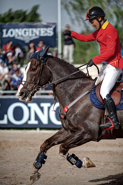 從2014浪琴?lài)?guó)際馬聯(lián)場(chǎng)地障礙世界杯中國(guó)聯(lián)賽(150cm)第二站冠軍領(lǐng)獎(jiǎng)臺(tái)上剛剛走下來(lái)的趙志文并沒(méi)有停下自己與馬匹一同跨越的步伐,他們又先后在鳥(niǎo)巢大師賽和中巡賽上登場(chǎng)亮相。依然是一襲紅色比賽服,那頂鑲嵌著國(guó)旗的頭盔,堅(jiān)毅的眼神專(zhuān)注著比賽路線,信心滿滿地跨越著每一道障礙。在中國(guó)馬術(shù)最繁忙的時(shí)期,“疲倦”二字是無(wú)法影響到渴望參與更多比賽的中國(guó)騎手的。因?yàn)槌D牝T馬,趙志文膚色有些黝黑,但他永遠(yuǎn)帶著一抹微笑與謙和與我們暢談自己的馬術(shù)生活。 2014年5月3日的北京朝陽(yáng)公園馬術(shù)場(chǎng)上,趙志文依靠在正賽與復(fù)賽上的兩次速度與激情完美結(jié)合的精彩發(fā)揮,最終贏得 2014 浪琴?lài)?guó)際馬聯(lián)(FEI)場(chǎng)地障礙世界杯中國(guó)聯(lián)賽(150CM)第二站的冠軍。場(chǎng)下,聊起這段“高光時(shí)段”,趙志文卻靦腆地笑了,“首先應(yīng)該感謝我的馬,它很好地完成了任務(wù)。當(dāng)然還有我的團(tuán)隊(duì),這是大家共同努力取得的成績(jī)?!彬T手與馬匹能夠出色完成比賽,都是離不開(kāi)幕后團(tuán)隊(duì)每一個(gè)人的辛勤付出的,因此趙志文和自己的團(tuán)隊(duì)有著很深的感情。這次能夠拿到馬術(shù)世界杯第二站的冠軍也是對(duì)趙志文一次莫大的鼓勵(lì),也給了他在接下來(lái)參加各項(xiàng)馬術(shù)賽事中更多的信心。層出不窮的馬術(shù)賽事也讓趙志文在國(guó)內(nèi)體驗(yàn)到了當(dāng)年出國(guó)打比賽時(shí)的感受,也對(duì)中國(guó)大賽的辦賽水準(zhǔn)、能力和以及各方面的宣傳力度贊許有加,“經(jīng)過(guò)持續(xù)多年的努力,像馬術(shù)世界杯等中國(guó)的馬術(shù)比賽已經(jīng)辦得越來(lái)越好了,堪比在歐洲進(jìn)行的一些馬術(shù)賽事?!?/div> 從小在法國(guó)阿爾卑斯山腳下長(zhǎng)大,這座古老的山峰不僅僅帶給趙志文快樂(lè)的童年,也把上天恩賜我們的精靈帶給了小趙志文。從7 歲第一次真正接觸馬開(kāi)始,趙志文就認(rèn)定它會(huì)是陪伴自己一生最好的朋友。作為 2008 年北京奧運(yùn)會(huì)上的奧運(yùn)騎手之一,在法國(guó)得到馬術(shù)啟蒙的趙志文到過(guò)不少?lài)?guó)家訓(xùn)練和比賽,所以在參加國(guó)內(nèi)的馬術(shù)比賽過(guò)程中,他也有著一些自己的看法:“如今,中國(guó)馬術(shù)賽事的規(guī)格越辦越高,進(jìn)入中國(guó)的馬匹也越來(lái)越優(yōu)秀,因?yàn)橐簿托枰覀冑愂碌挠布夏軌驖M足我們的比賽和馬匹的要求。比如在鋪設(shè)比賽場(chǎng)地時(shí)就需要從馬匹健康的角度出發(fā)去保證質(zhì)量。在鳥(niǎo)巢大師賽上,我們是在草地上進(jìn)行比賽,這非常考驗(yàn)騎手控制馬匹,而且雨也下得不小,但因?yàn)閳?chǎng)地的質(zhì)量可以保證馬匹的健康,所以騎手們就敢于為了成績(jī)‘放手一搏’。世界杯選擇沙地作為比賽場(chǎng),騎手就相對(duì)容易與馬配合得更好。我覺(jué)得世界杯的熱身場(chǎng)地是很不錯(cuò)的,比賽場(chǎng)地也很好,但我覺(jué)得還有提升的空間,我相信如果場(chǎng)地條件好的話我還能騎得更好?!北M管是在談?wù)撡悎?chǎng)的問(wèn)題,但趙志文更多是從關(guān)注馬匹健康的角度去思考很多細(xì)節(jié),就像是關(guān)心一位摯友,內(nèi)心的細(xì)膩與真切的情感展露無(wú)遺。 馬兒對(duì)于趙志文有著特殊的意義,他與馬之間有一種特殊的聯(lián)系。他懂馬,親自照料自己的馬,而馬也在賽場(chǎng)上用良好的表現(xiàn)回報(bào)了趙志文的關(guān)愛(ài)?!榜R是我生活中非常重要的一部分,我不能想象沒(méi)有它的生活?!闭嫘郧榈内w志文喜歡追隨自己的熱情生活,他的熱情就是騎馬,馬術(shù)也是他今生都會(huì)追求的職業(yè)。對(duì)此,他也心懷感恩:“我認(rèn)為自己很幸運(yùn),能把自己感興趣的事當(dāng)做自己的職業(yè)。馬術(shù)給我的生活帶來(lái)了許多,我與馬也在每天相處間共同成長(zhǎng)著。與馬匹有深刻的交流,讓我也學(xué)到了很多,騎馬是一件非常有趣的事,因?yàn)槟銖牟粫?huì)停止學(xué)習(xí)或停止提高,你總有進(jìn)步的空間?!辈粌H如此,馬術(shù)還有另一個(gè)魅力同樣吸引著趙志文:“在馬術(shù)的行業(yè)中,我總會(huì)去世界各地參加或觀摩比賽,也讓我結(jié)交了許許多多世界各地的朋友,接觸不同的人,與他們交談,這也是非常有趣的?!?/div> 如今,打小與馬結(jié)緣的趙志文已經(jīng)把這份馬術(shù)生活成為了自己的職業(yè),似乎現(xiàn)在他的整個(gè)生活都圍繞著馬、馬術(shù)。當(dāng)下,許多人都在生活中迷失了對(duì)未來(lái)的追逐,年紀(jì)輕輕的趙志文卻對(duì)自己的馬術(shù)生活有如同他眉宇間散發(fā)的堅(jiān)毅一般執(zhí)著,“我會(huì)一直在這個(gè)行業(yè)中努力下去,多參加高水平的馬術(shù)比賽,與更多的世界頂尖騎手進(jìn)行交流,也許有一天我不能再參加比賽,但我絕對(duì)不會(huì)讓自己的生命中沒(méi)有馬的陪伴。” 中國(guó)馬術(shù)的快速發(fā)展,也讓趙志文希望自己能成為助推行業(yè)發(fā)展的一部分,“我非常想當(dāng)一名教練,10 年前我在法國(guó)就獲得了馬術(shù)教練資格證書(shū)。