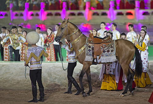 關(guān)于阿哈爾捷金馬,民間流傳有很多故事。如果你不太確定它的身份,那么我想它的另一個(gè)名字“汗血寶馬”,一定會(huì)讓你恍然大悟。汗血寶馬的傳奇故事不勝枚舉,最令大眾感覺到有爭議的說法是:汗血寶馬在賽場上驍勇奮戰(zhàn)時(shí),究竟會(huì)不會(huì)有血液從毛孔中滲出? 汗血寶馬產(chǎn)于土庫曼斯坦科佩特山脈和卡拉庫姆沙漠間的阿哈爾綠洲,是經(jīng)過 3000 多年培育而成的世界上最古老的馬種之一。它奔跑速度快,耐力強(qiáng),常用作長距離的騎乘馬(跑千米僅需 1 分鐘)以及場地障礙和盛裝舞步馬,目前在國際上的售價(jià)最高可達(dá)千萬美元。 2000 年,被世人公認(rèn)的汗血寶馬原產(chǎn)地國家土庫曼斯坦前總統(tǒng)尼亞佐夫向中國送上了象征良好友誼的國寶作為禮物,時(shí)任國家主席江澤民得到的這匹馳名天下的“天馬”當(dāng)時(shí)只有 5 歲,名叫“阿赫達(dá)什”。在抵達(dá)中國前,它被養(yǎng)在總統(tǒng)馬房,因其父輩曾是國際馬匹速度賽的冠軍而備受呵護(hù)。為了這匹汗血寶馬中的精品馬順利來到中華大地,我國曾花費(fèi) 70 萬元租賃伊爾 -76 型專機(jī)飛越絲綢之路接來“這位尊貴的客人”。隨著阿赫達(dá)什的到來,中國馬場的工作人員也真正地認(rèn)識到原來汗血寶馬并不會(huì)流血,土庫曼斯坦專家給出的官方解釋為:“所謂的汗血可能是由于馬的皮膚較薄,奔跑時(shí)能看見血液在血管中流動(dòng)?!?/div> 現(xiàn)在阿赫達(dá)什的新家位于京津交界的國家汗血寶馬中心,每個(gè)清晨它都會(huì)在一個(gè)木柵欄圍成的圓形戶外場地里曬太陽,沐浴陽光是它每天的必修課。阿赫達(dá)什體型微瘦,四肢修長,走起來步伐十分輕盈。一身黑色的毛皮,在陽光下閃閃發(fā)亮。長長的脖頸上黑色的鬃毛讓它顯得十分精神。 在中國的新生活對阿赫達(dá)什來說充滿了新鮮感,當(dāng)然,也有很多不適應(yīng)。最初它進(jìn)食草料的量時(shí)多時(shí)少。飼養(yǎng)員發(fā)現(xiàn),它在家鄉(xiāng)時(shí)草料中的苜蓿草占有很大比重,而這里的馬場草料中,禾本科草占的比重比較大。為了讓阿赫達(dá)什吸收更多的營養(yǎng),工作人員為它特別調(diào)制了一款中國大餐,每天除了國外進(jìn)口的特級苜蓿草和東北運(yùn)輸來的特級牧草,還要定時(shí)投放胡蘿卜、燕麥、玉米、復(fù)合維生素及微量元素等精飼料,各種成分的比例都經(jīng)過研究和反復(fù)試驗(yàn),以保證營養(yǎng)均衡。喂食有嚴(yán)格的時(shí)間表,每天的 5 時(shí)、12 時(shí)、20 時(shí)正點(diǎn)喂料。漸漸地,工作人員細(xì)心、耐心、科學(xué)的調(diào)整幫助阿赫達(dá)什適應(yīng)了遷移帶來的生活環(huán)境上的改變。 2006 年,尼亞佐夫再次訪華,又贈(zèng)送給時(shí)任國家主席胡錦濤一匹汗血寶馬——阿爾喀達(dá)葛。阿爾喀達(dá)葛也是一匹三蹄踏雪的黑馬,額頭有一顆像鉆石一樣的白星。它比阿赫達(dá)什小 7 歲,兩兄弟比鄰而居,相處甚是和諧。2012 年,國家汗血寶馬中心采用現(xiàn)代繁殖技術(shù),為阿爾喀達(dá)葛進(jìn)行了汗血馬純種繁殖。2013 年,阿爾喀達(dá)葛有了 8 個(gè)孩子——“7 女 1 男”,這是阿爾喀達(dá)葛的第一批純種后代。汗血寶馬作為優(yōu)良基因庫,能為馬的育種提供非常好的基因,這一點(diǎn)幾乎是馬界專家的共識。今年,阿爾喀達(dá)葛又多了 8 個(gè)“孩子”。這些后代全部歸我國所有。 2014 年 5 月 12 日晚,習(xí)近平與土庫曼斯坦總統(tǒng)別爾德穆哈梅多夫到勞動(dòng)人民文化宮,共同出席世界汗血馬協(xié)會(huì)特別大會(huì)暨中國馬文化節(jié)活動(dòng)。習(xí)近平代表中方接受別爾德穆哈梅多夫贈(zèng)予的一匹汗血寶馬。在接受汗血寶馬時(shí),習(xí)近平稱贊汗血寶馬是享譽(yù)世界的優(yōu)良馬種。這是一匹金海騮汗血公馬,年齡 4 歲,名字是 Pudak(音譯:普達(dá)克;土庫曼語的意思是植物的根)。普達(dá)克擁有黃金般質(zhì)感的“金毛”,而這種金色唯汗血寶馬獨(dú)有;它的體形非常好,其中一蹄為白色。據(jù)中國馬業(yè)協(xié)會(huì)理事王振山介紹,之前獲贈(zèng)的兩匹汗血寶馬都是中方專機(jī)接回,而這次是土方當(dāng)面贈(zèng)予。 在土庫曼斯坦,有一句家喻戶曉的諺語,把它翻譯成中文是這樣說的:早晨起來,第一件事是向父親和母親請安,第二件事就是向自己的馬問好和請安。不難看出,汗血寶馬在土庫曼國寶級的地位當(dāng)真名不虛傳,國徽和貨幣有它的身影,就連土庫曼斯坦電視臺(tái)新聞節(jié)目始播前的屏幕上也會(huì)出現(xiàn) 5 匹汗血寶馬并排向前駛?cè)サ漠嬅?。汗血寶馬作為如此重要的禮物當(dāng)然也只能贈(zèng)送給最尊貴的朋友,中土兩國的友誼也將因此得以見證與延續(xù)。 |