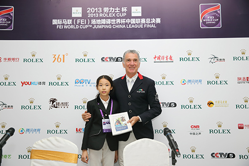 1. 在中國(guó)聯(lián)賽 140-150CM 世界杯預(yù)選賽賽后的新聞發(fā)布會(huì)現(xiàn)場(chǎng),法國(guó)騎手 Michel Robert 將自傳《The Secrets and Methods of a Great Champion》送給了年齡最小的地桿賽選手馬若沂,他筆下的賽事經(jīng)驗(yàn)及馬術(shù)心得是中國(guó)青少年騎手迫切需要學(xué)習(xí)的! 2. 馬術(shù)比賽過(guò)程中,觀眾不宜發(fā)出刺耳的聲音或拍照使用閃光燈,以保護(hù)馬匹不受到驚嚇。因此,每每騎手與馬匹完成最后一道障礙時(shí),觀眾壓抑已久的情緒就會(huì)瞬間爆發(fā),熱烈的掌聲是表達(dá)真實(shí)情感最直接的方式。 3. 接近傍晚時(shí)分,一位小朋友手持自己在親子體驗(yàn)區(qū)與馬匹的互動(dòng)照片,認(rèn)真地思考著。組委會(huì)此類配套活動(dòng)的設(shè)置為童真的孩子們提供了更多與馬匹親密接觸的機(jī)會(huì)。 4. 媽媽們總是想把全世界最好的東西給予孩子,多接觸體育運(yùn)動(dòng)也是其中一項(xiàng)重要的幸福指標(biāo)。你猜這兩位小伙子在觀賽過(guò)程中想到了什么呢?一定是很驚艷的場(chǎng)面。不信?你看他們張大的驚訝的小嘴。 5. 徐悲鴻藝術(shù)委員會(huì)委員成員武馬先生為世界杯預(yù)熱,現(xiàn)場(chǎng)潑墨畫馬。他筆下的馬雄健、剛勁,卻也顯現(xiàn)出了瀟灑與飄逸的韻味。 6. 中國(guó)香港騎手林子心與法國(guó)騎手 Michel Robert 因欣賞彼此的騎術(shù)而熱情擁抱,這樣的擁抱讓賽事主辦方期待中外馬術(shù)共同進(jìn)步的愿望有了更多的可能。 7. 當(dāng)天星調(diào)良榮膺中國(guó)聯(lián)賽第二站 130cm 俱樂(lè)部團(tuán)體冠軍時(shí),登頂領(lǐng)獎(jiǎng)臺(tái)的騎手們沒(méi)有忘記與已故的戰(zhàn)友分享勝利!被高舉在相片中的人是天星的優(yōu)秀資深教練徐天來(lái),今年 9 月 13 日因突發(fā)心臟病,永遠(yuǎn)地離開(kāi)了我們?!皝?lái)來(lái)的一生雖只有短短的三十四年,但他是個(gè)有德行的人,善良、簡(jiǎn)樸、平易近人,桃李滿天下。他為馬匹和馬術(shù)奉獻(xiàn)了一生,在出事的前一天晚上,還在為馬細(xì)心地縫制防止磨馬肚子的用具?!睆埧山叹殶o(wú)不緬懷地講述。 8. 馬房里,有位姑娘在細(xì)心地幫馬匹綁護(hù)腿。她是馬術(shù)行業(yè)的工作者,比任何人都了解參賽馬匹的辛苦。而這樣的畫面也給了我們重要的啟示:馬是人類永恒的摯友,需要我們共同去關(guān)心愛(ài)護(hù)它。 |