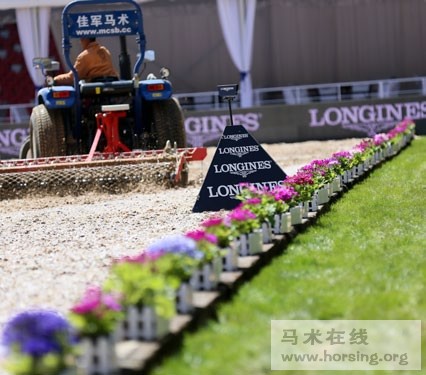 就一場專業(yè)的馬術(shù)賽事而言,每一個細微的環(huán)節(jié)都顯得至關(guān)重要。場地,是騎手和馬匹向來賓呈現(xiàn)優(yōu)雅騎姿的舞臺,理應(yīng)需要工作人員更多的關(guān)注??吹焦ぷ魅藛T在近萬平米的場地上認真處理著500 噸障礙沙與近10 噸纖維混合而成的特殊材料時,我們只想向每一位為地面保護工作而做努力的工作人員致敬。