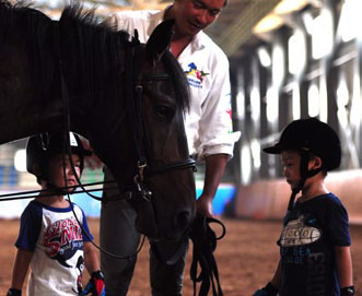 戴上騎士帽,換上馬靴,套上手套,兩個(gè)年僅5歲的小朋友在教練的引導(dǎo)下正與來自歐洲的溫血馬做親密接觸,孩子正專注地觀察馬匹的一舉一動(dòng)。在場的家長表示,通過馬術(shù)學(xué)習(xí)能讓孩子得到鍛煉,并會教育他們擁有愛心、耐心及恒心。