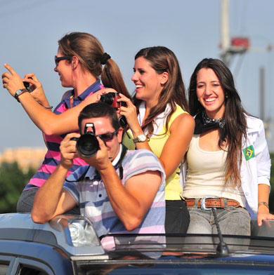 在城市馬隊(duì)游行中,有些坐在敞篷車頂部的國外騎手,他們歡樂大笑,隨時(shí)與街邊的觀眾互動(dòng),用標(biāo)準(zhǔn)的中文“你好”熱情地與觀眾打著招呼,西部騎手隨著高喊著牛仔界的統(tǒng)一口號“YAHOO-”,還時(shí)不時(shí)地用相機(jī)記錄下各種難忘和美好的瞬間。此刻,他們身心都已經(jīng)準(zhǔn)備好參加這個(gè)盛大的馬文化節(jié)狂歡了。