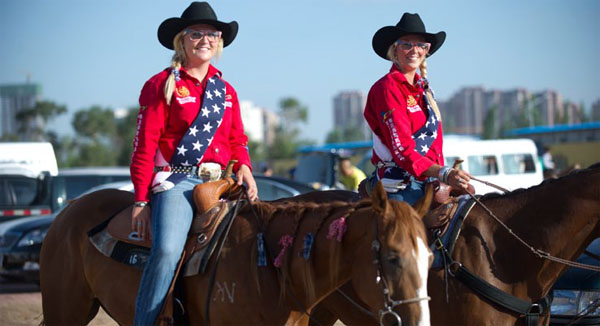 這兩位來自美國的美女騎手并非雙胞胎,但她們熱衷于穿一樣的衣服、戴一樣的配飾、梳一樣的發(fā)型,甚至連坐騎的裝扮都別無二致。靚麗的她們騎馬所經(jīng)之處,人們總誤認(rèn)為這是一對西部孿生姐妹花。