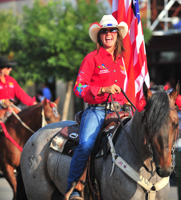 第一次見Emma Chapman 是在邦成牧場的會所,她正和朋友聊得起勁,一邊說一邊手舞足蹈,一身紫色T 恤和運(yùn)動褲顯得休閑而放松,金色的頭發(fā)隨意地扎著,戴著一副大黑框眼鏡,典型的美國妞兒,這個活潑可愛的姑娘立刻給我留下了深刻的印象。再次見她是8 月9 日,在室內(nèi)場館的第一次帶妝彩排,Emma 全身牛仔裝扮,牛仔帽、脖間漂亮的小方巾、西部異域風(fēng)情的天藍(lán)色襯衫、做工精美的巴扣腰帶、牛仔褲、牛仔靴,韁繩柔軟下垂,瀟灑穩(wěn)健地騎坐在馬背上向我們走來,雖與我印象中的陽光小美女判若兩人,但也格外明艷動人。 但真正的牛仔不是一幀靜景、一幅海報所能表現(xiàn)的,牛仔意味著激烈的動態(tài)、矯健的身手。Emma 是很有實(shí)力的女牛仔,擅長繞桶和套牛,邀請本屆馬文化節(jié)各國繞桶騎手的NBHA 繞桶協(xié)會聯(lián)絡(luò)負(fù)責(zé)人Thomas 說她是同時被兩個馬主推薦來的;在很多歐洲或西部騎手口中,她是被連連夸贊的“從不失手”的套牛女郎。 表演場上,小牛被放出,Emma 催馬飛奔而出,與Tyrel 配合默契,用繩索熟練準(zhǔn)確地套住牛犢,這一切就發(fā)生在幾秒之內(nèi),令人欽佩不已;其間她不忘耍弄套索,在馬背上放松圈扣也是有特殊翻腕手法的,正轉(zhuǎn)、反轉(zhuǎn)、側(cè)轉(zhuǎn)看得觀眾眼花繚亂。觀眾席上口哨聲,歡呼聲,不絕于耳。牛仔大致分為兩類,一類是農(nóng)場牛仔,為農(nóng)場主打工,另一類就是Emma這樣的職業(yè)牛仔,平日專門訓(xùn)練馬,以參賽贏取獎金為生,可謂“久經(jīng)沙場”。但于她,參加如此大型的馬文化節(jié)表演卻是第一次,Emma 告訴我:“我知道主辦方為本屆文化節(jié)投入了大量的財力、人力、物力,進(jìn)口了這么多優(yōu)秀的馬,我希望觀眾能喜歡我們的演出。我為完善表演投入了相當(dāng)多的精力,這是我預(yù)料之外的。在美國參加比賽的時候,我們只管賽出好成績,不用做任何計劃,但是表演是另一回事,要考慮觀眾、攝像等方面的需求,至于燈光、音樂、煙霧、如何進(jìn)場、在場地內(nèi)哪個位置轉(zhuǎn)彎、如何銜接每個動作、如何不分散觀眾的注意力等都是我們要考慮的因素。在策劃表演的時候,我第一次意識到需要花費(fèi)大量的時間,在線路圖上的每個細(xì)節(jié)都要想清楚。比如Tyrel 唱歌時四周女牛仔的伴舞,我們是6 個騎手一起花了3 個小時才把其中所有細(xì)節(jié)的動作安排合理。而且,每天隨著討論、彩排,我們的計劃也在逐步完善?!?/div> 除了為表演的付出,她與其他騎手相處的過程中也收獲頗多。回想起近一個多月的生活,Emma 說:“雖然我只來了中國,但是卻像周游了世界一樣。我喜歡嘗試,一有機(jī)會就會和各類騎手交流,我不僅和他們聊天,我還會觀察他們?nèi)绾悟T馬,體會他們表達(dá)的意思,這是一種文化交流。”她和葡萄牙、瑞典、丹麥、奧地利等歐洲國家的騎手聊天,問他們?nèi)绾握樟?、?xùn)練馬,從中吸取適用的方法。這段時間和這么多西部騎手的交流,我認(rèn)識到,即使同在美國,馬文化也是有差異的。Emma 就一口氣如數(shù)家珍般地列舉出了很多:“首先,美國馬就分很多種,項(xiàng)目就更多了,有西部騎乘、控牛、截牛、套牛、休閑騎乘、穿樁、繞桶、騎牛、騎野馬等。我是繞桶賽和套牛的騎手,盡管都是騎夸特馬,但如果不是因?yàn)檫@場馬文化節(jié),我是無法與Melissa 這樣的截牛騎手相遇的。再比如,同樣來自德克薩斯州,同樣做與繞桶有關(guān)的事兒,但是我沒有聽說過“6666”農(nóng)場,我和他們派來的幾個牛仔聊農(nóng)場繁育馬的項(xiàng)目,了解他們對夸特馬的認(rèn)識,這些知識都很有可能用來提升我繞桶的水準(zhǔn)。所以,我非常珍惜這次機(jī)會,我不僅從其他騎手那里獲得了寶貴的知識和經(jīng)驗(yàn),我們還會成為很好的朋友?!?/div> |